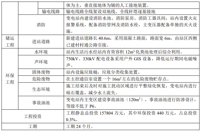 工程静态总投资 157804 万元,其中环保投资440 万元,占总投资0.3%。