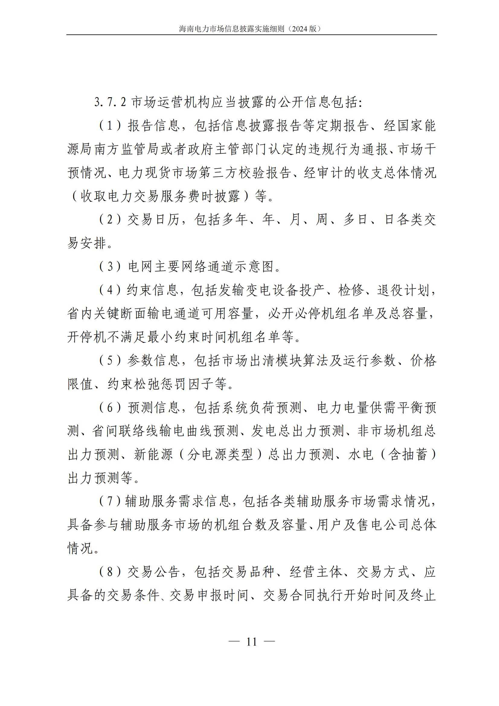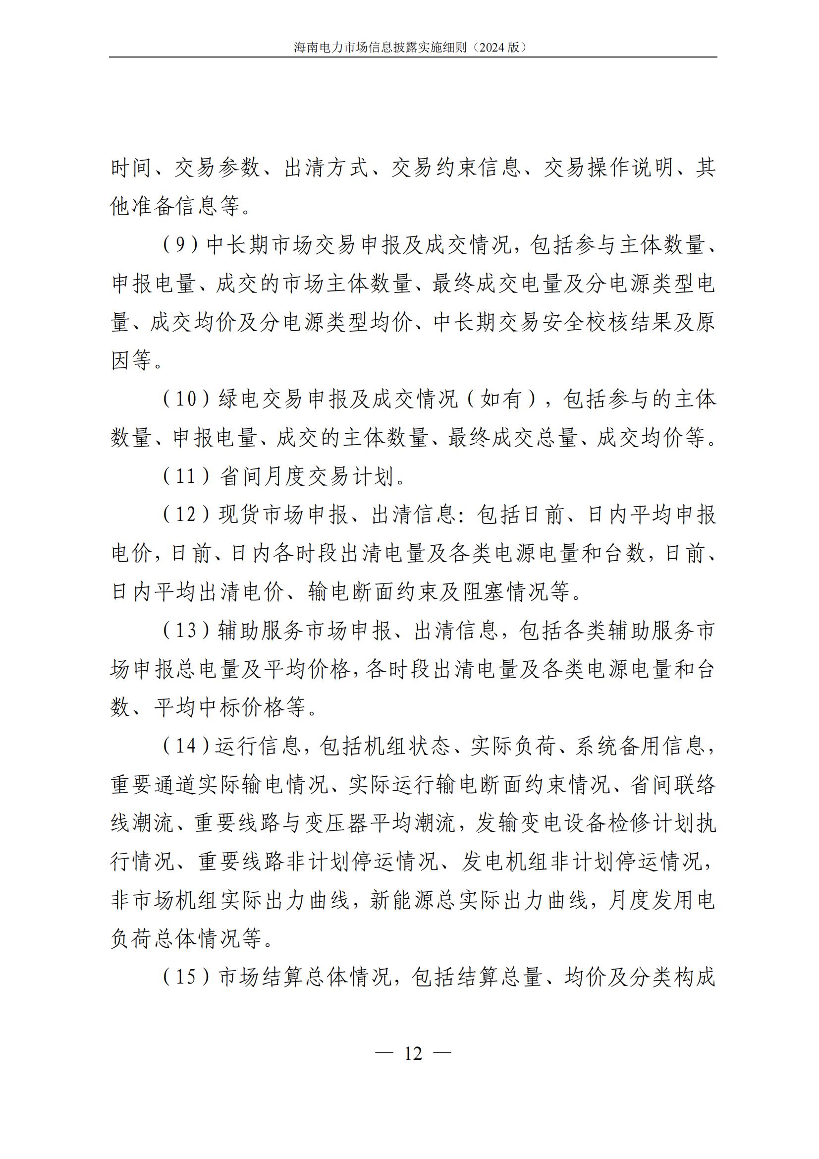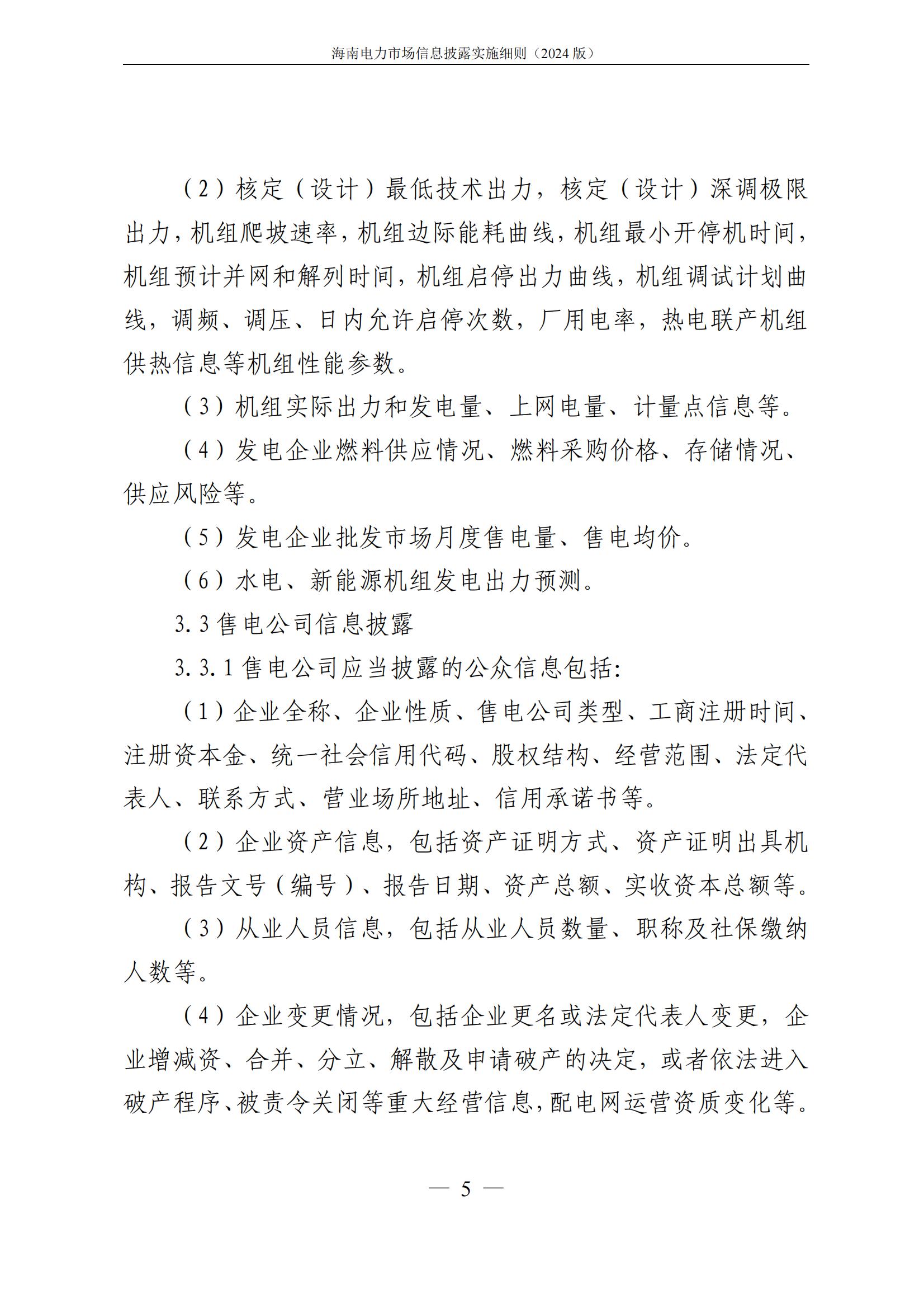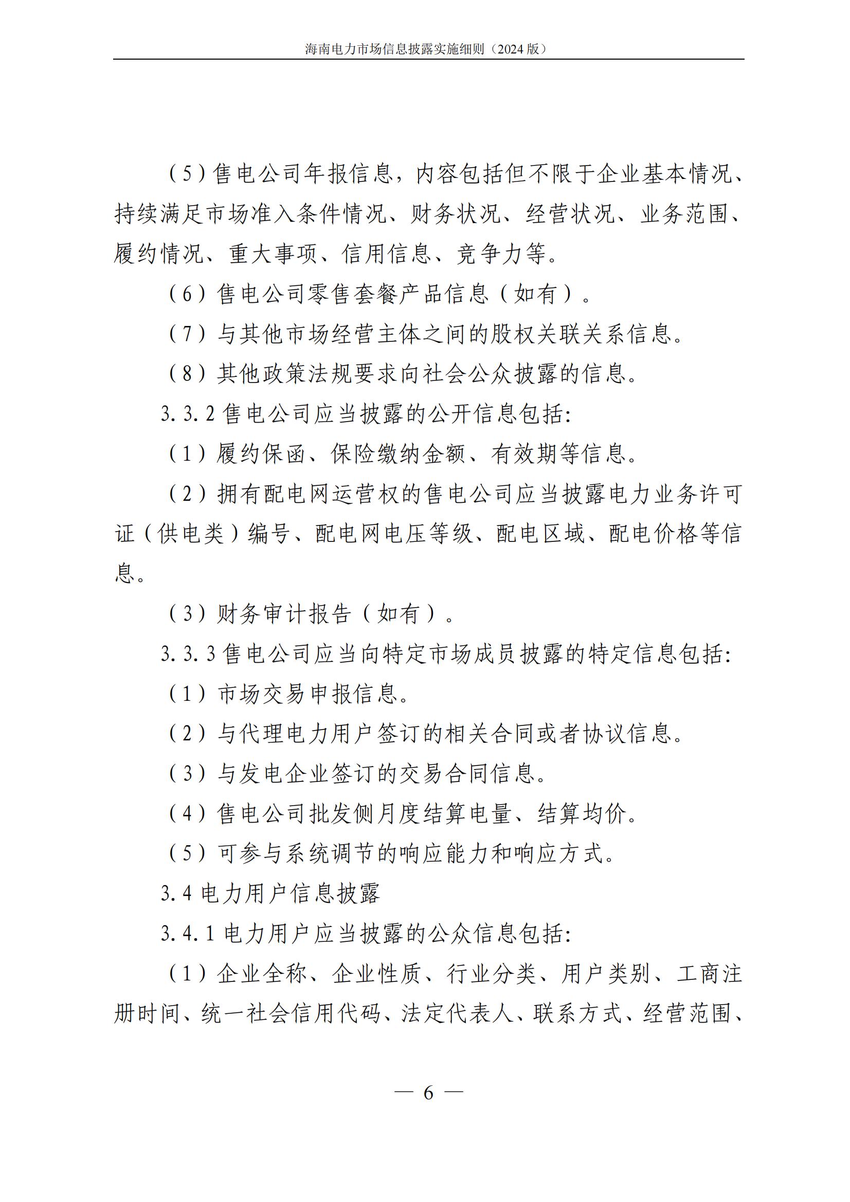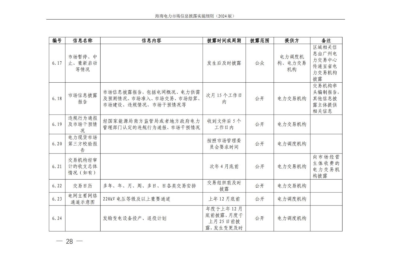 海南电力市场信息披露实施细则(2024年版)印发