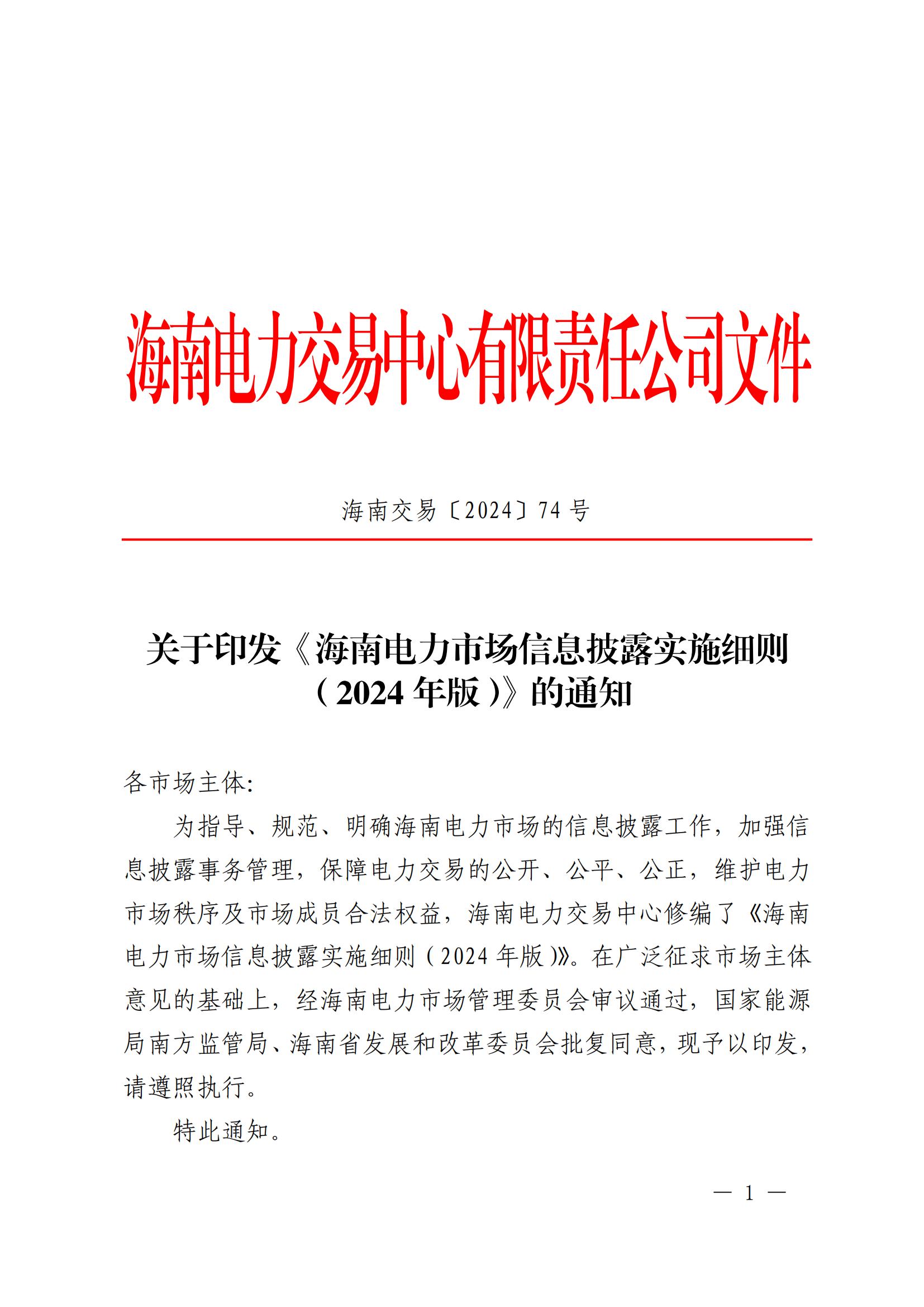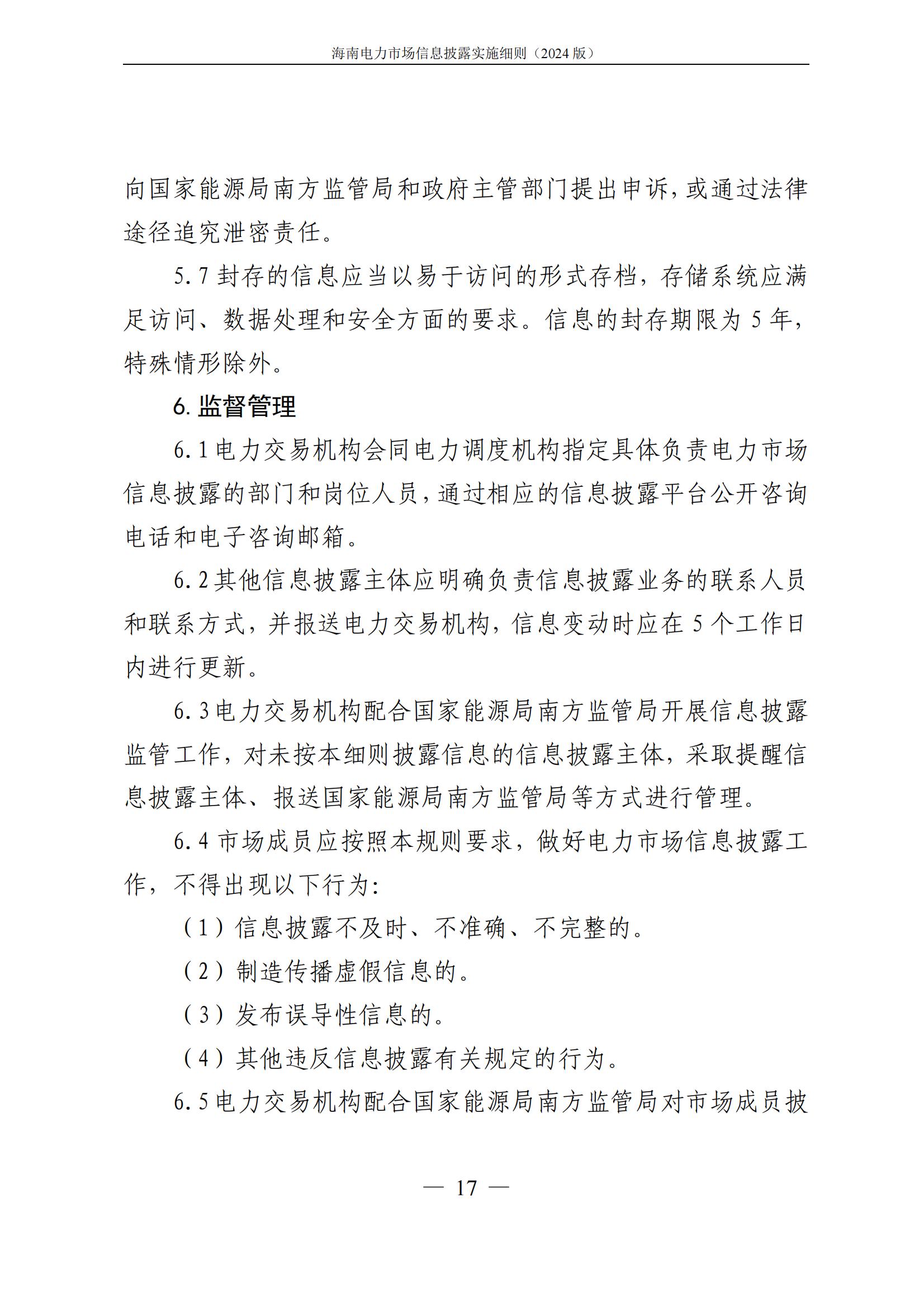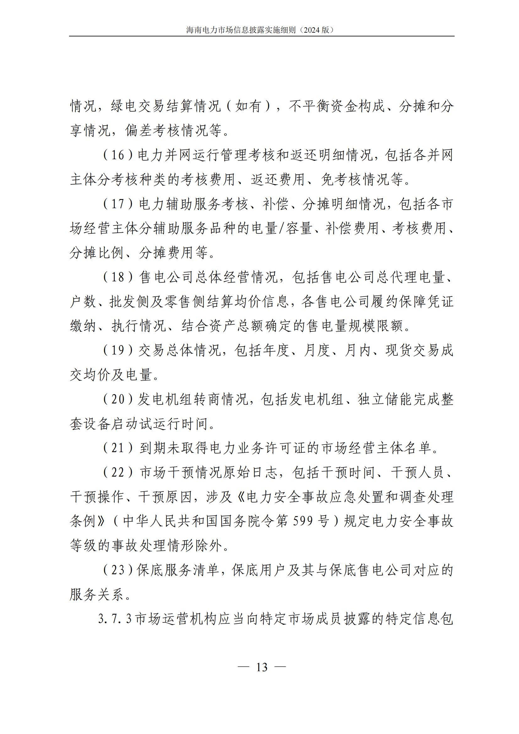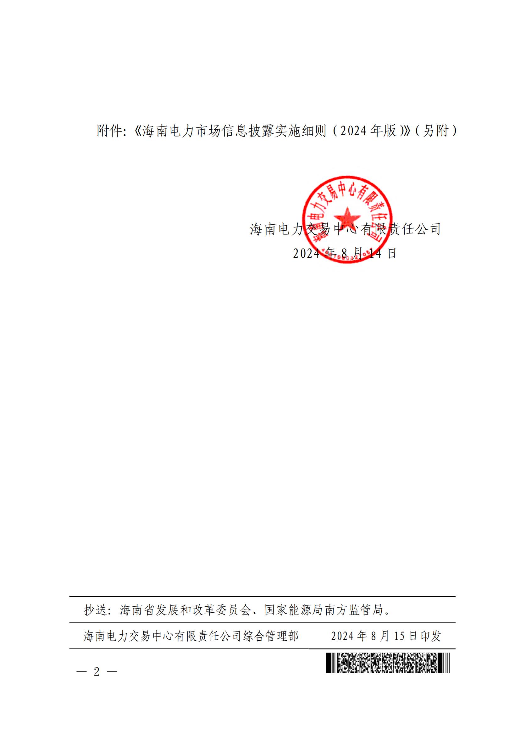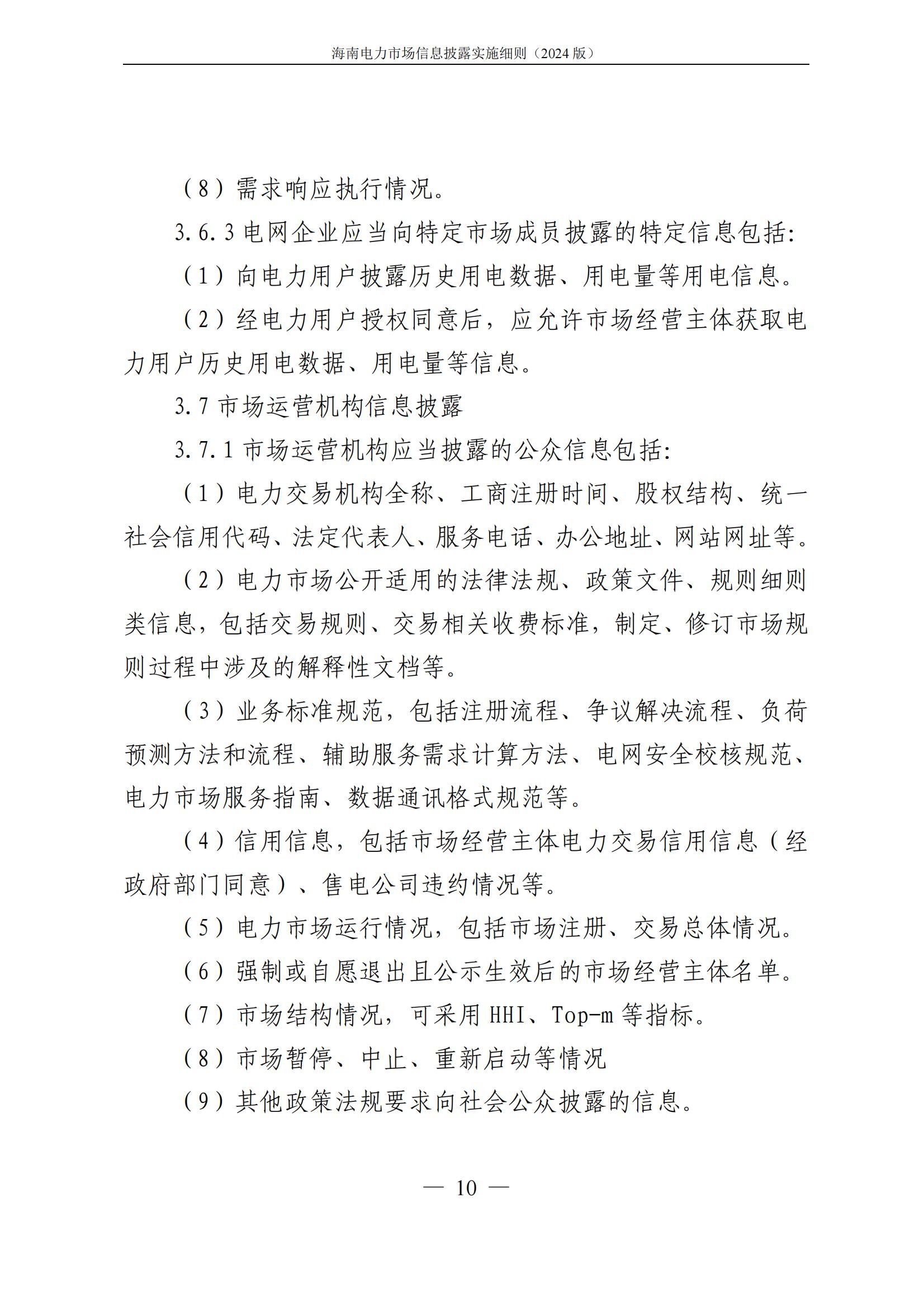 海南电力市场信息披露实施细则(2024年版)印发