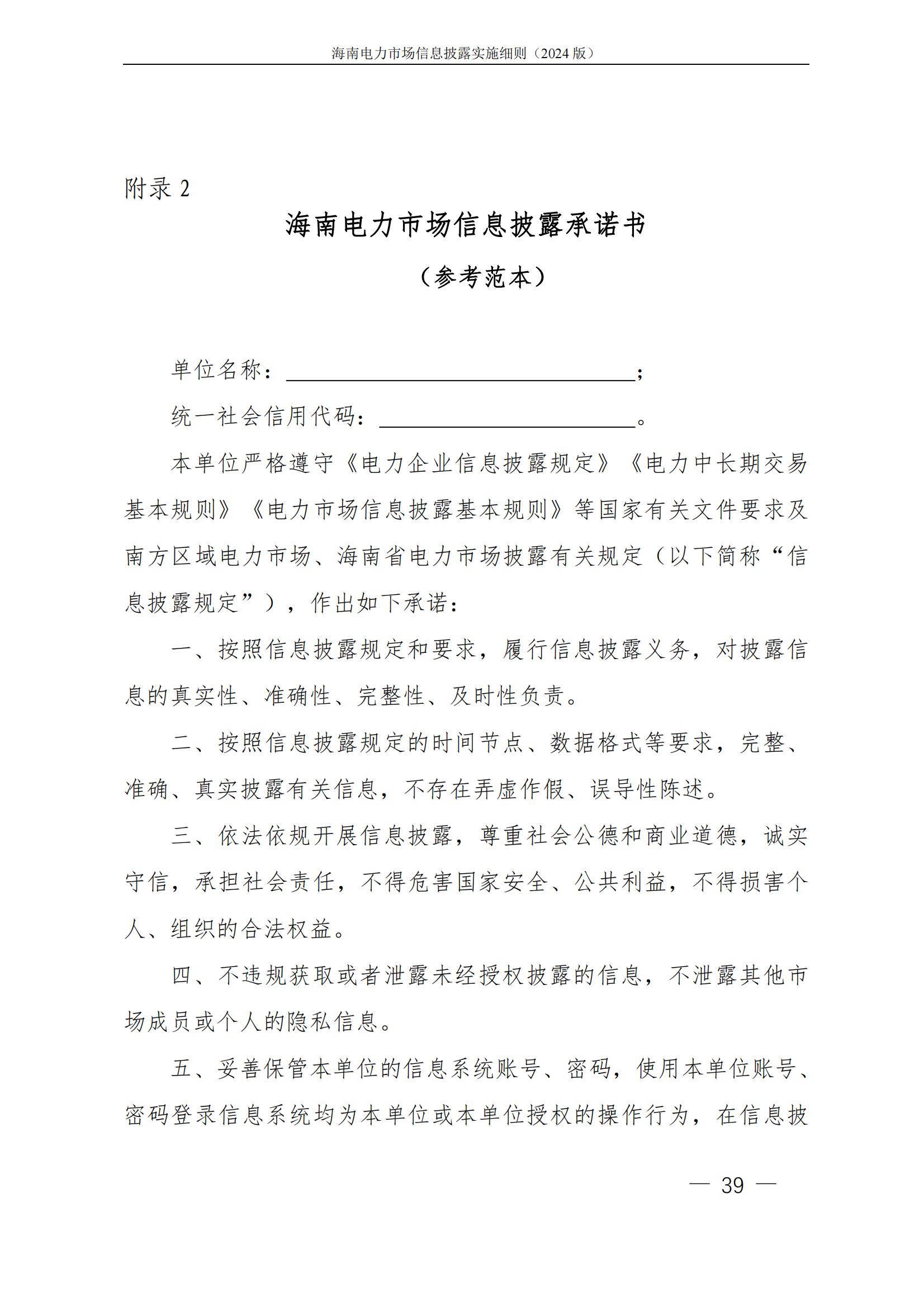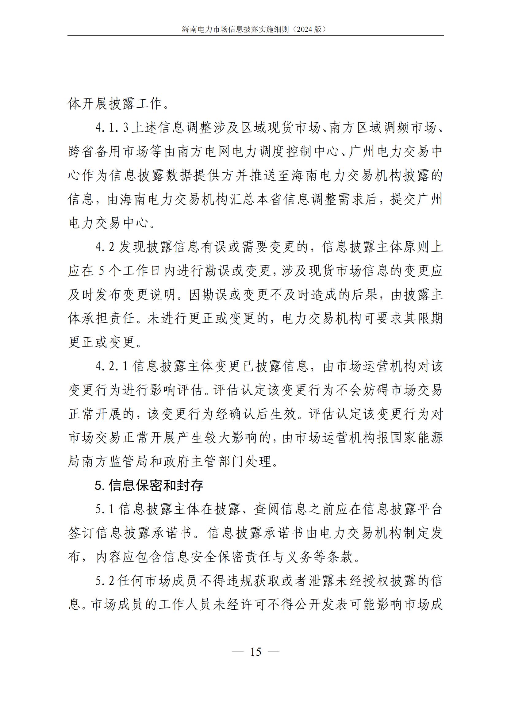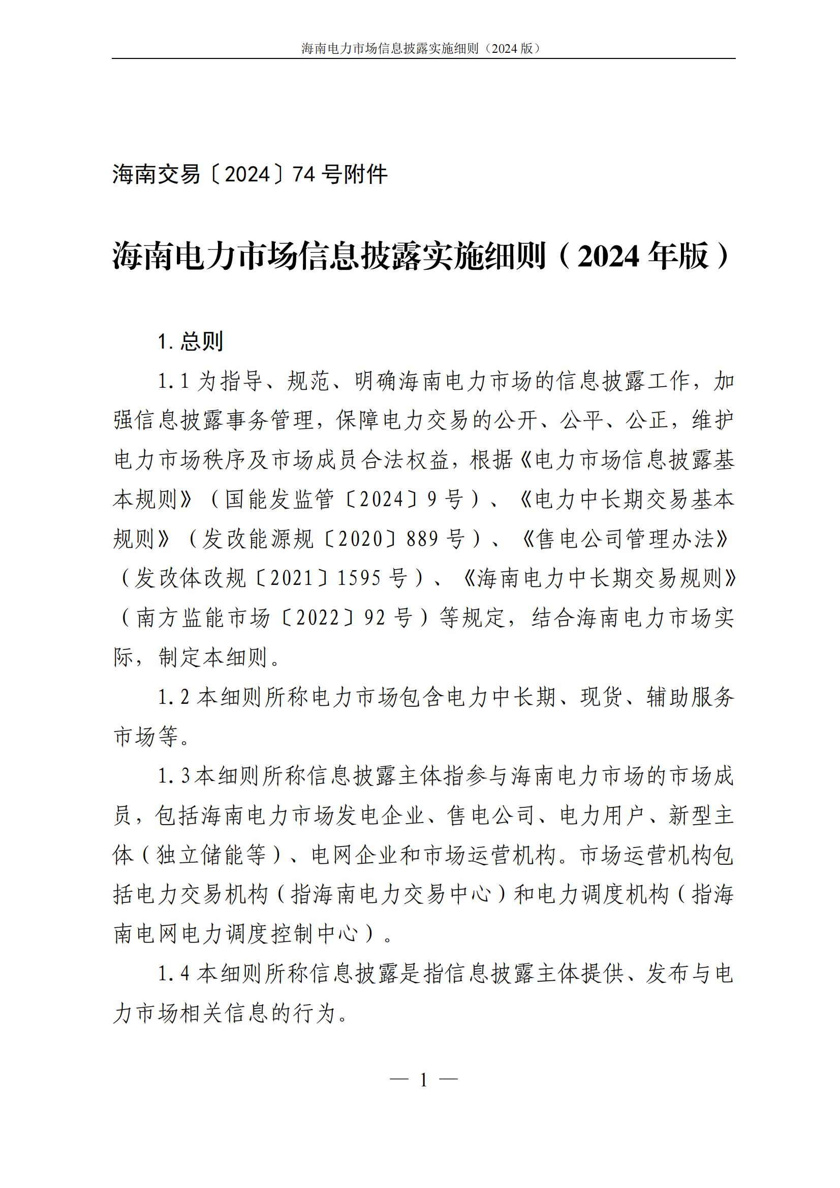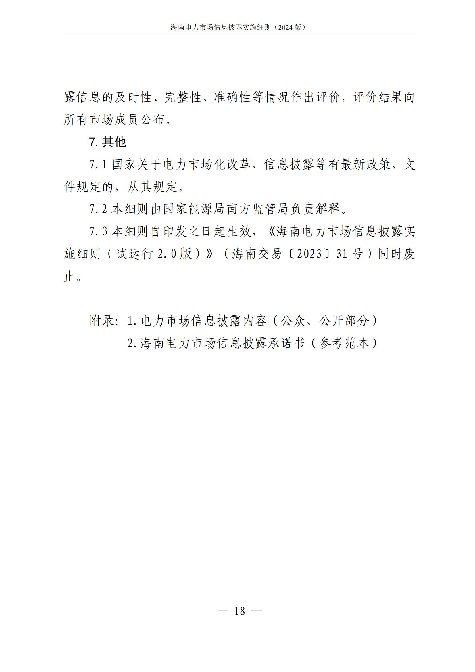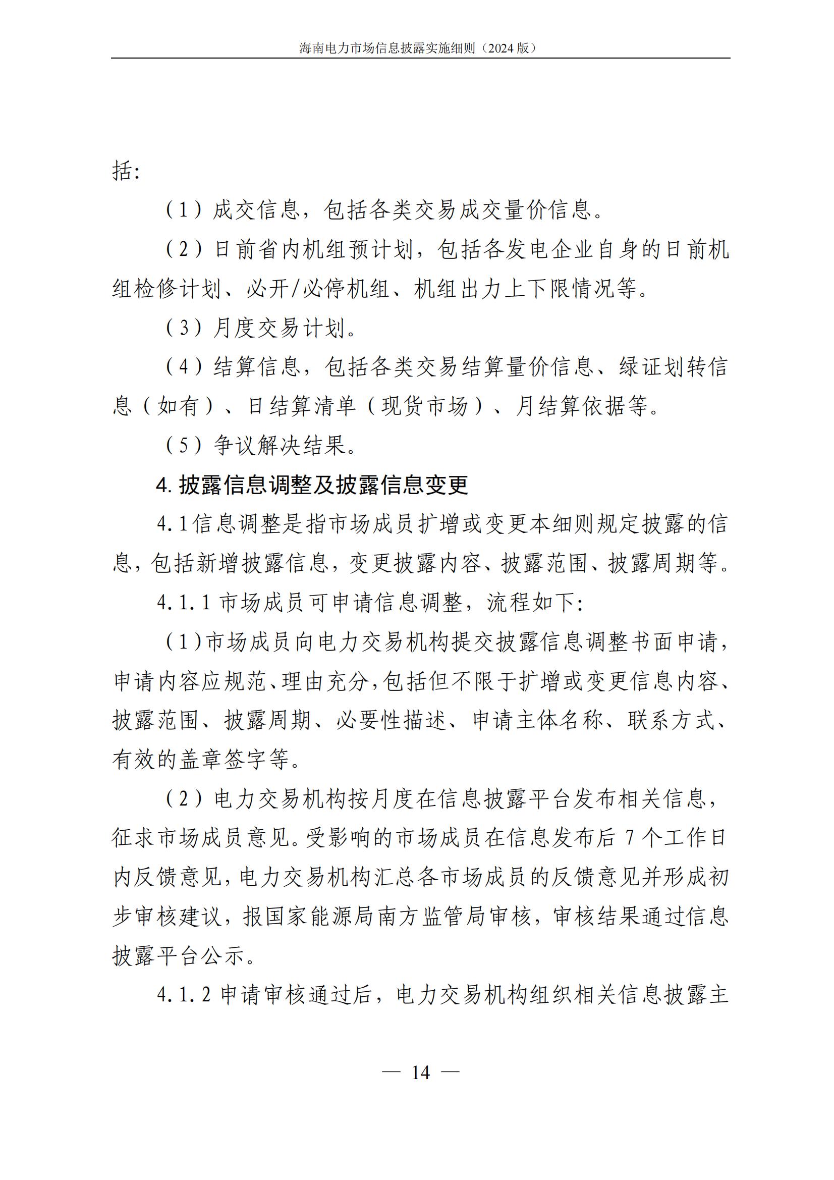 海南电力市场信息披露实施细则(2024年版)印发