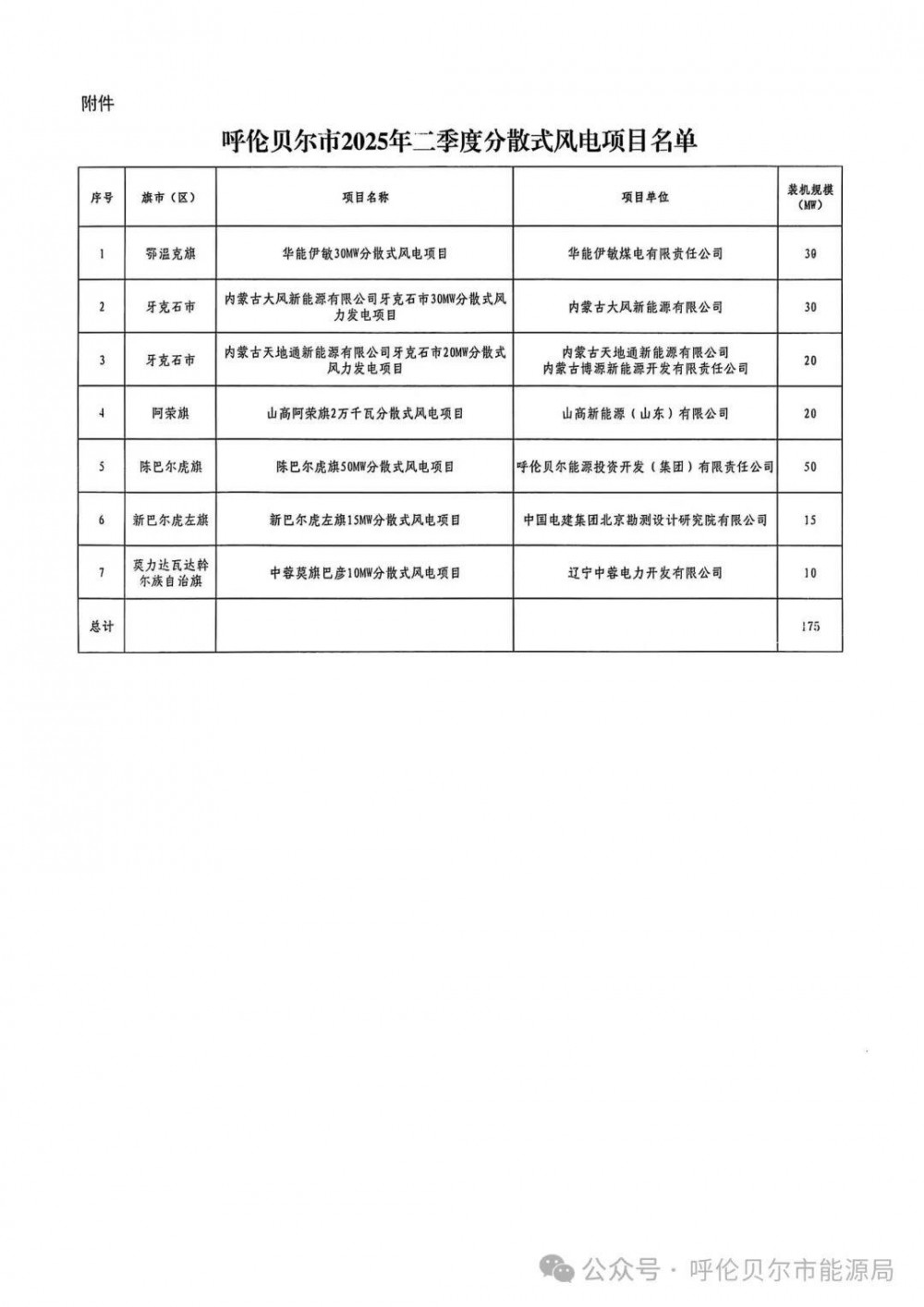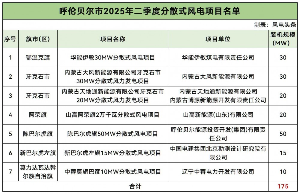 华能、中电建等上榜!内蒙古呼伦贝尔市175mw分散式风电优选结果公示