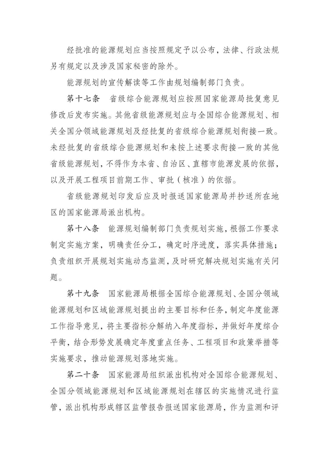 内容指出,能源规划包括全国综合能源规划、全国分领域能源规划、区域能源规划和省、自治区、直辖市能源规划(以下简称省级能源规划)等。