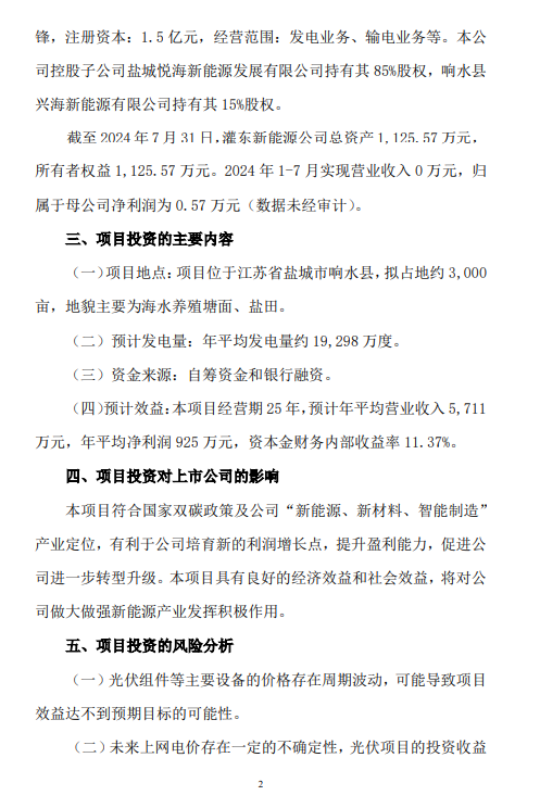 9月14日,悦达投资发布关于盐城市灌东盐场新能源发展有限公司投资150mw项目的公告。