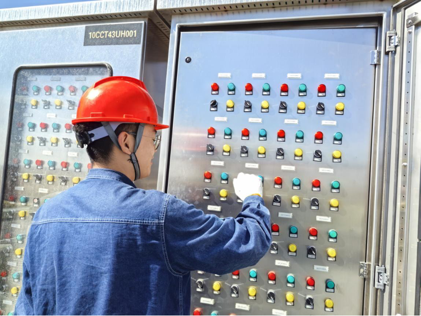 金一明有着丰富的火电运维经验。当听到打开蒸汽阀门指令后,他迅速回复并操作按钮打开蒸汽阀门。相较于火电运维,他说:“火电运维关注的是煤、水、汽,光热运维关注的是熔盐、水、汽。光热电站有熔盐系统,不需要处理煤炭和燃烧等系统,厂房比火电更清洁。通过与设计院、调试单位、安装单位、监理单位等单位一同参与调试,我们逐步掌握了储换热系统操作要点,也了解了其中的风险点。对于做好今后运维工作,我们充满信心。”