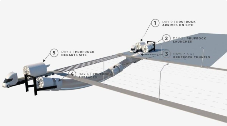 马斯克旗下隧道挖掘公司推出全电动自动隧道掘进机prufrock 5