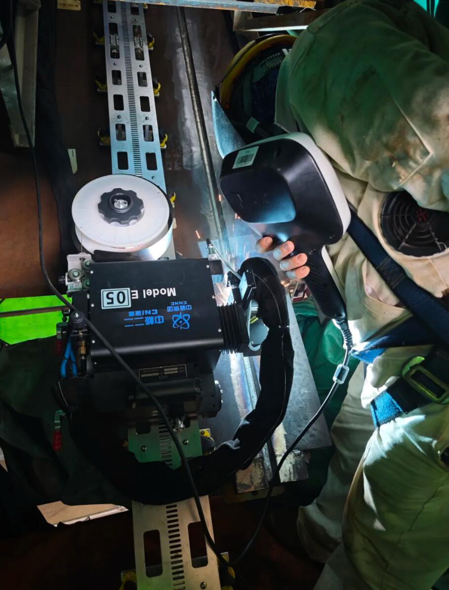 直面现场拼装工装复杂、作业空间受限的难题,研发团队将送丝机与焊接小车本体高度集成,大幅缩短送丝距离,从根源上保障送丝稳定性。相较于以往焊接电源、送丝机、小车“各自独立”导致的移动不便、焊接距离受限问题,新装备更轻巧、更灵活、更适配现场复杂工况。