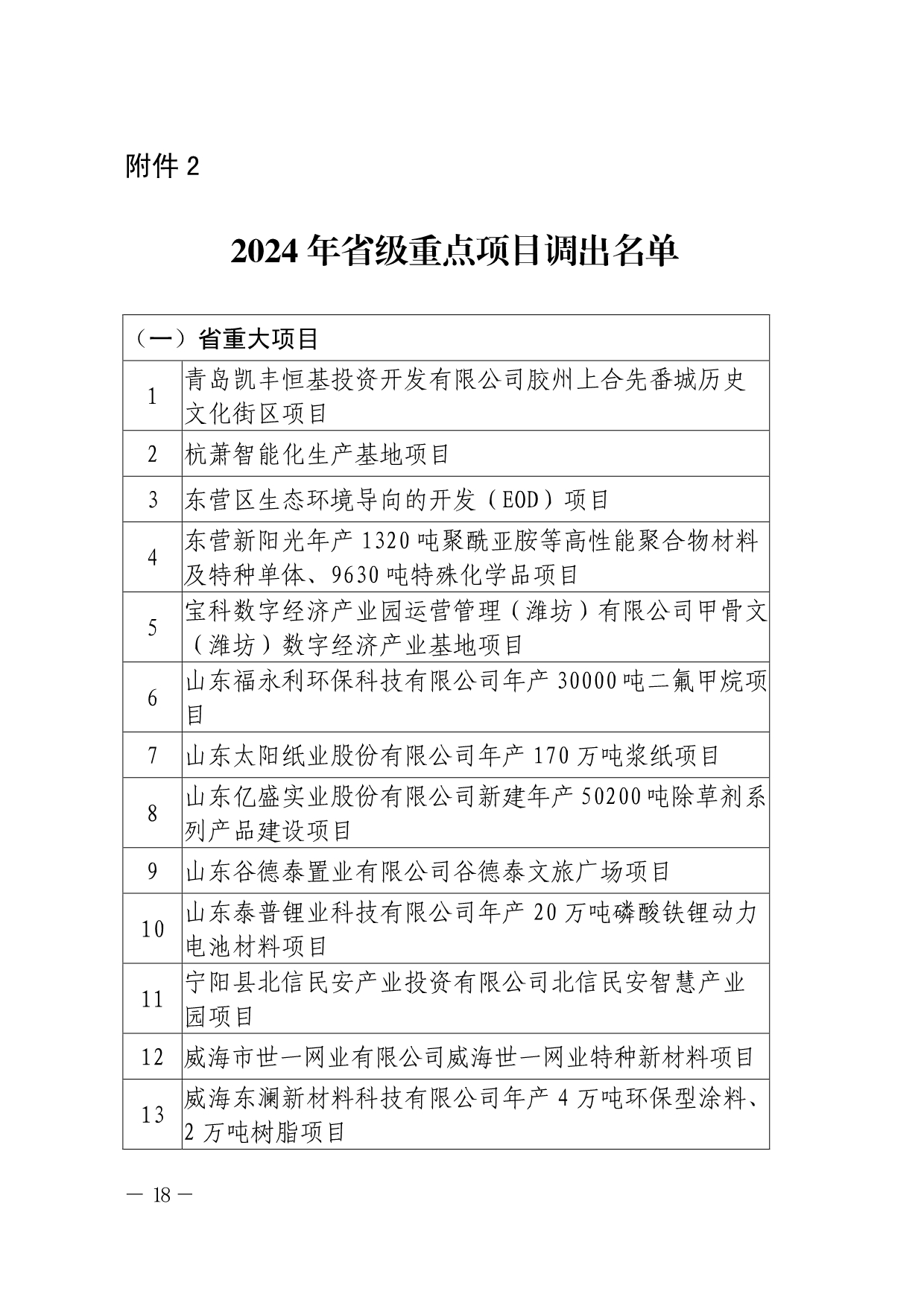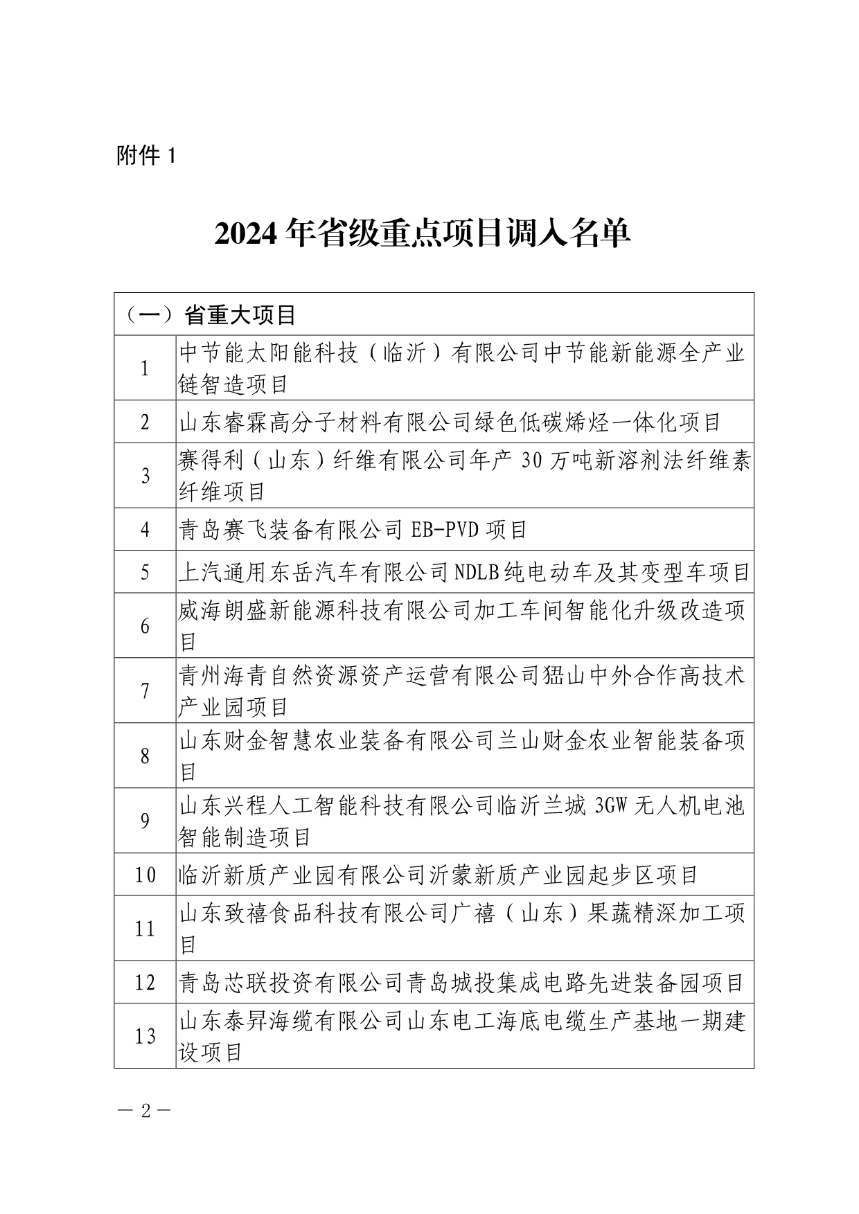 山东省发展和改革委员会 关于印发2024年省级重点项目调整名单的通知