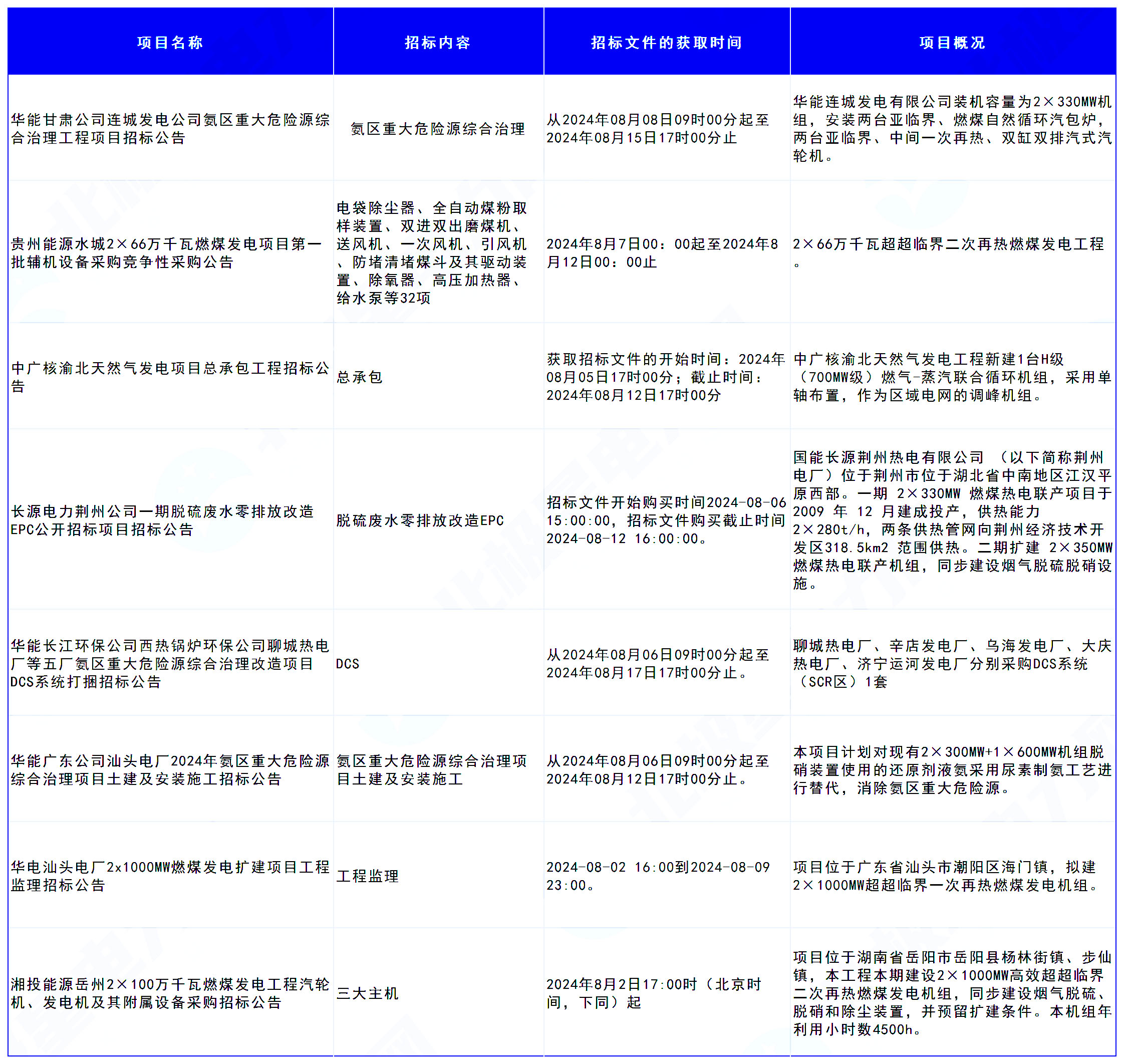 华能、中广核、国家能源集团等8家火电厂重要招标