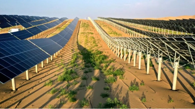 库布其沙漠地处三北防护林的西北部,东西全长约400公里,占三北防护林东西长度的近10%。近年来,三峡集团依托库布其基地项目等新能源项目,在库布其地区拓展沙漠治理新领域,探索出光伏发电、沙漠治理、现代农业于一体的光伏产业和工业治沙新模式,改善了当地的生态环境,为筑牢祖国北疆绿色长城贡献三峡力量。