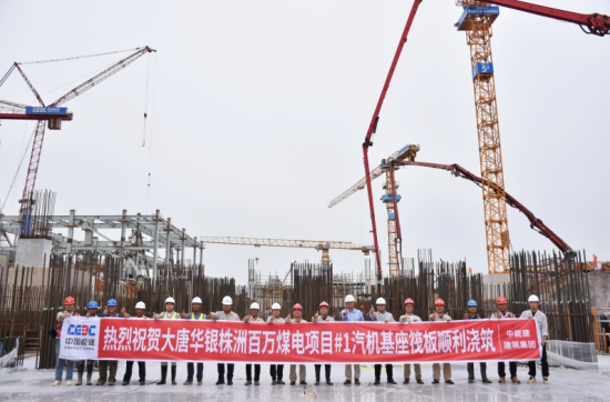 大唐华银株洲2×100万千瓦扩能升级改造项目1号汽机基座筏板大体积混凝土浇筑完成