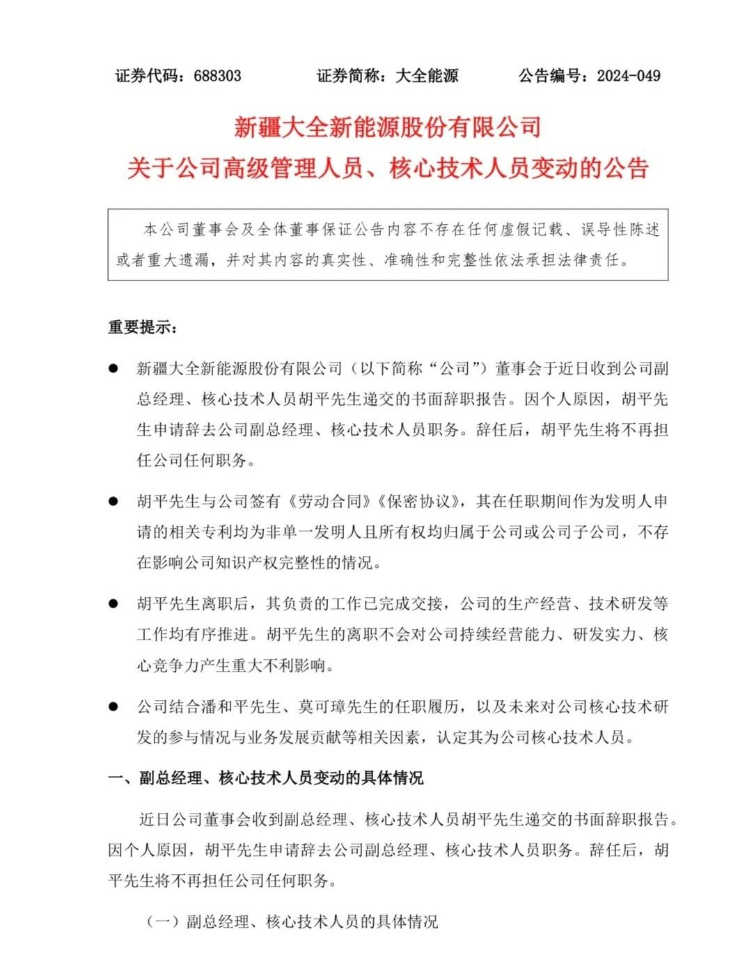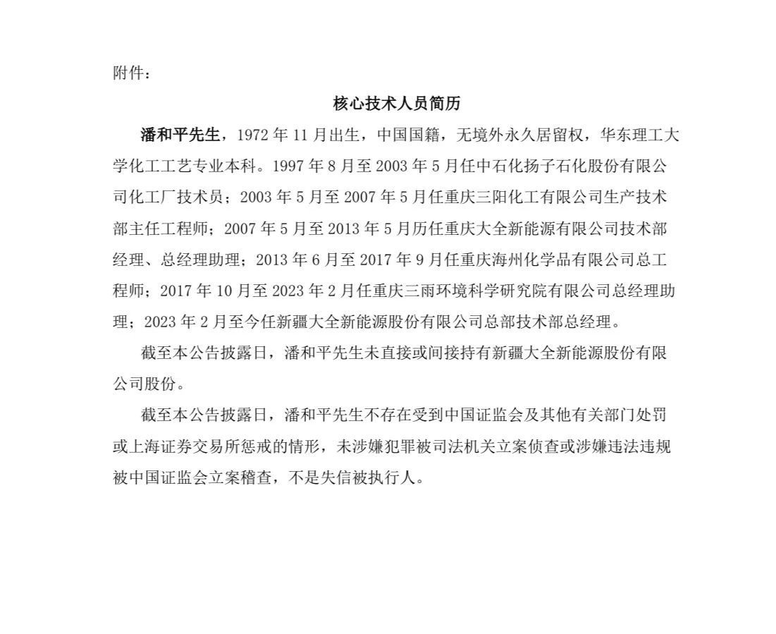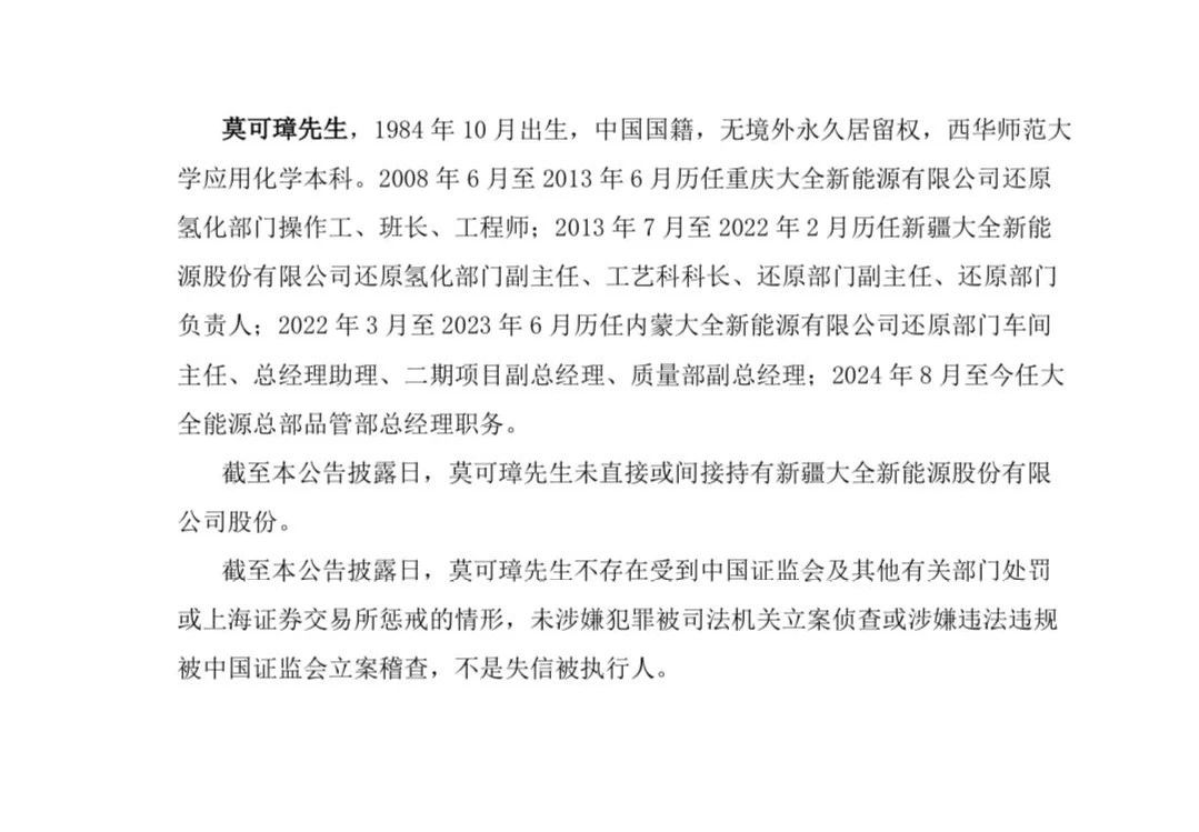新疆大全新能源重要人事调整