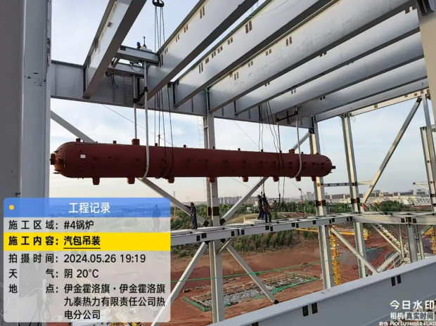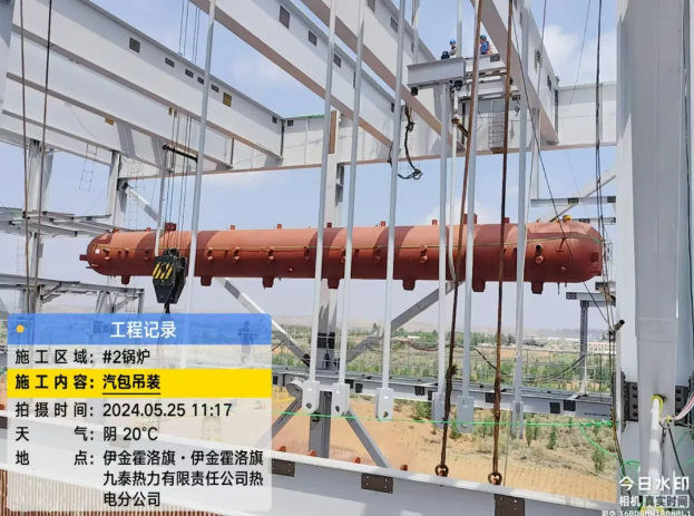 2024年5月25日至26日,由迪尔集团第二战区承建的内蒙古九泰热力有限责任公司伊金霍洛旗 4×100mw机组热电联产项目,#2、#3、#4锅炉汽包依次顺利吊装就位。