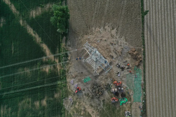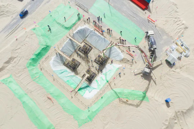 全体施工作业人员克服低温、沙尘天气影响,奋战施工一线,开展组塔架线。工程于2023年3月14日完成了首基杆塔基础浇筑,同年11月7日首段220千伏输电线路正式贯通,具备送电条件。截至目前,第二段220千伏输电线路已完成组塔工作,线路架设26千米,完成工程总量的70%,预计7月底全部完工。