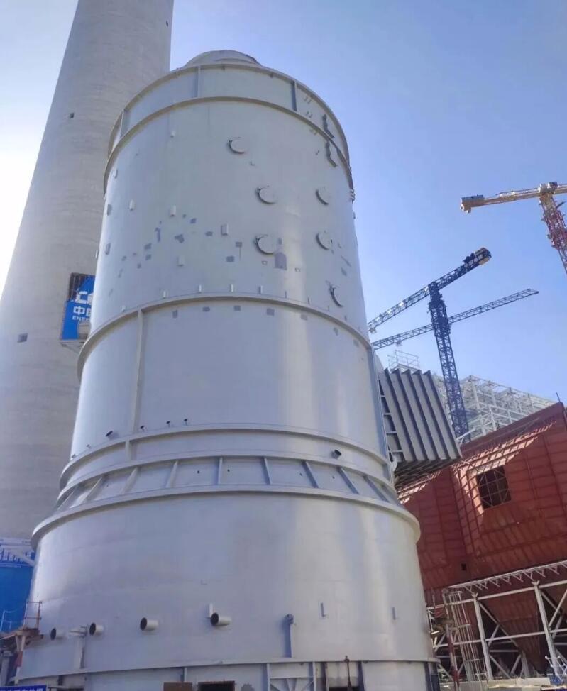 9月22日,中煤广元燃煤发电项目现场传来捷报,1号机组脱硫吸收塔随着23圈壁板焊接完成,总高58.2米,直径21.6-19.6米,重量679吨的吸收塔主体顺利落成。项目正式转入吸收塔内部防腐施工、附件安装阶段,为脱硫系统整体工期进度奠定了坚实根基。