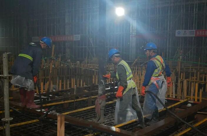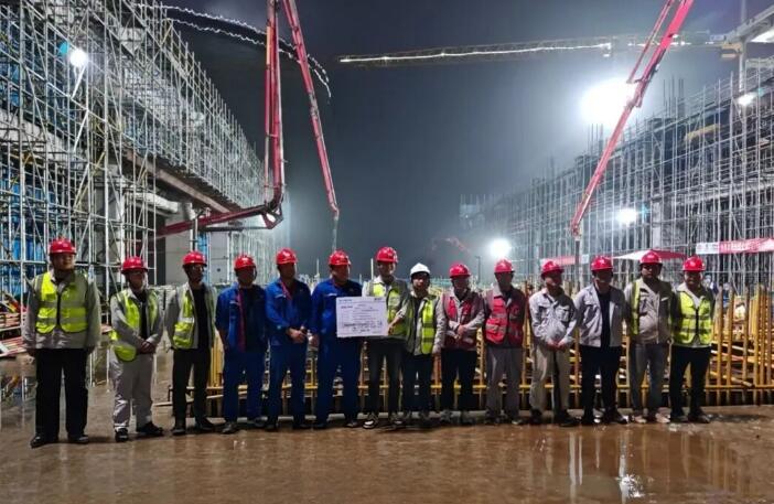 为确保浇筑作业高质量进行,公司工程管理部主动作为、靠前指挥,协同各参建单位专业人员冒雨实施分组联合验收,同步开展预埋件定位与模板安装等的精度核查,确保了关键工序达到毫米级控制标准。浇筑期间,项目团队实施全过程质量监控,对混凝土坍落度等关键指标进行实时检测与调整,确保混凝土工作性能符合配合比设计要求,实体质量全面达标,充分展现了中煤永城项目团队的专业素养与协同作战能力。