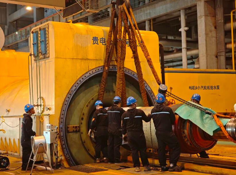 9月26日19点20分时,贵电#6机组发电机转子平稳落地,发电机转子抽吊工作较原计划提前1天完成。