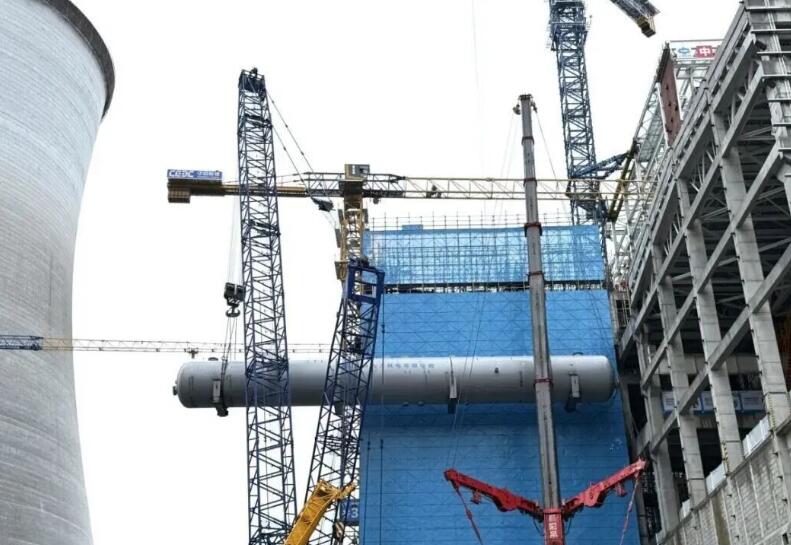 作为电厂热力系统的“水质净化中枢”,除氧器承担去除给水溶解氧的关键职能,是抵御管道腐蚀、保障机组长周期安全运行的核心屏障。此次吊装采用“双机抬吊”方案,以毫米级精度彰显施工专业水准。