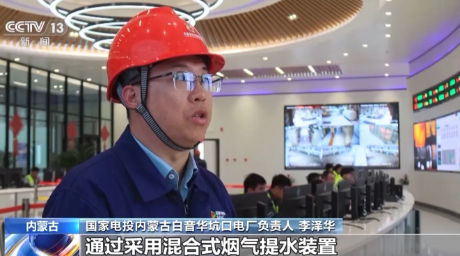 国家电投内蒙古白音华坑口电厂负责人 李泽华:通过采用混合式烟气提水装置来实现煤中取水,不仅能用于全厂的生产补水,还可以提供给邻近单位供给生产用水,每年节水效益可以达到1000万至1200万元。