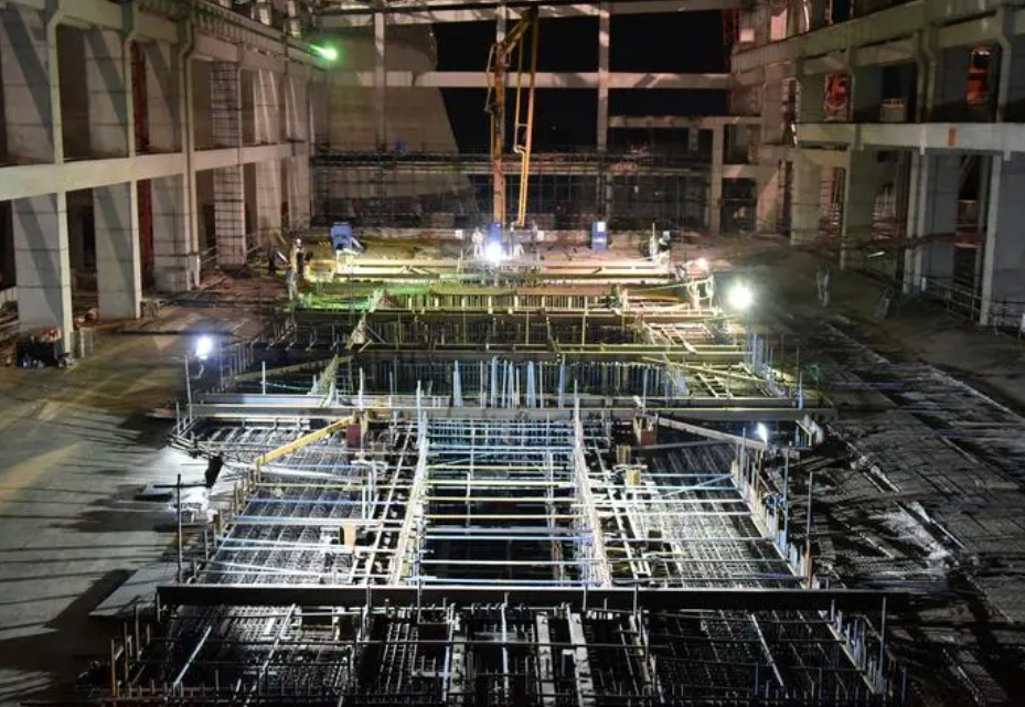 淮北聚能发电2×660mw机组工程#2汽轮发电机基座底板混凝土浇筑完成