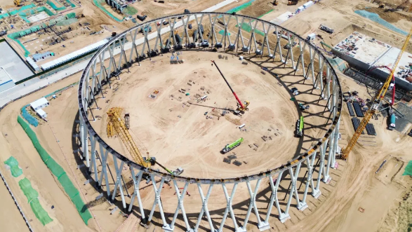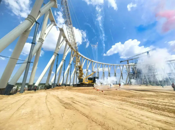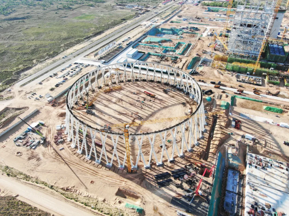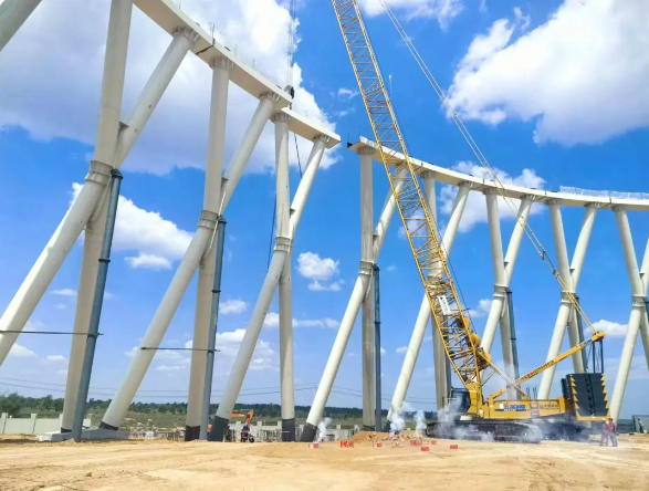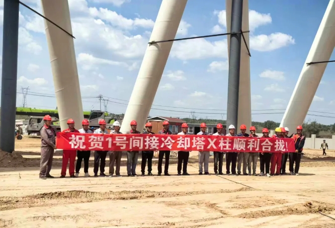 1号间冷塔x柱顺利合龙
