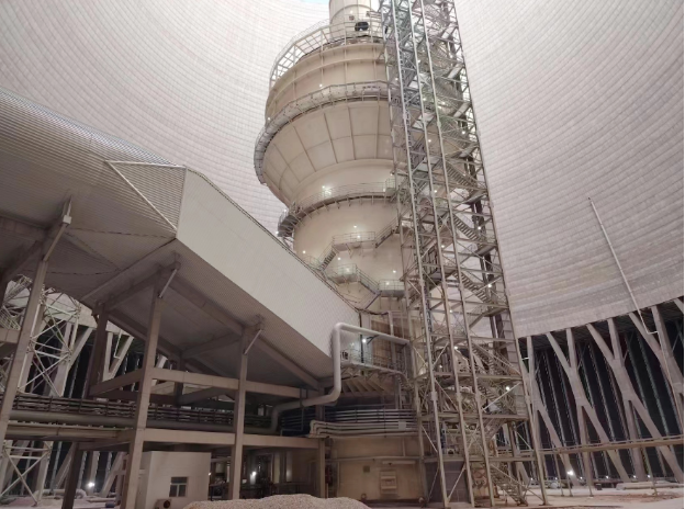 该项目为世界首例将空冷塔、烟囱、脱硫塔、湿式除尘器统一布置,采用“四塔合一”技术的百万机组。