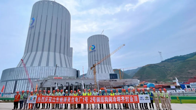 7月13日,山东院总承包建设的山东能源灵台2×100万千瓦调峰煤电项目,两座钢结构间冷塔主体顺利合拢封顶。该间冷塔高195米(约80层楼高),是目前全球最高在建钢结构间冷塔。