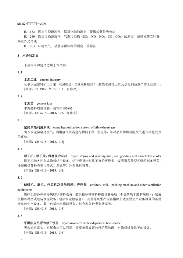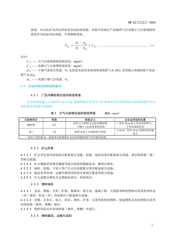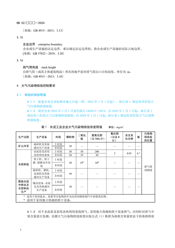 贵州省生态环境厅7月24日发布关于公开征求《贵州省水泥工业大气污染物排放标准(征求意见稿)》意见建议的公告,其中水泥窑及窑尾余热利用系统颗粒物、二氧化硫、氮氧化物有组织排放标准为ⅰ时段10、50、200mg/m3,ⅱ阶段10、35、50mg/m3,要求新建企业自本标准实施之日起(即:2025年1月1日起),ⅱ阶段大气污染物排放限值。现有企业2025年1月1日前仍执行gb49152013,自2025年1月1日起,执行ⅰ阶段大气污染物排放限值;自2029年1月1日起,执行ⅱ阶段大气污染物排放限值。