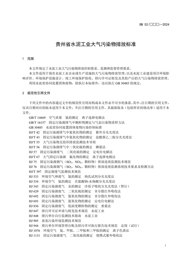 《贵州省水泥工业大气污染物排放标准(征求意见稿)》发布
