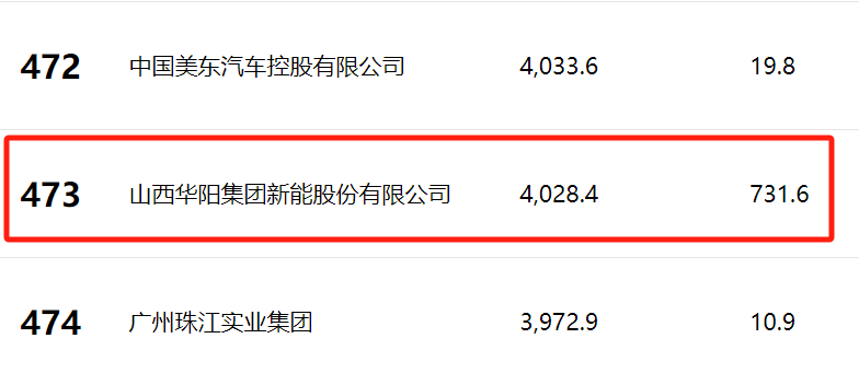 日前2024年《财富》中国500强排行榜揭晓华阳股份以营业收入285亿元利润78.88亿元位列第473位