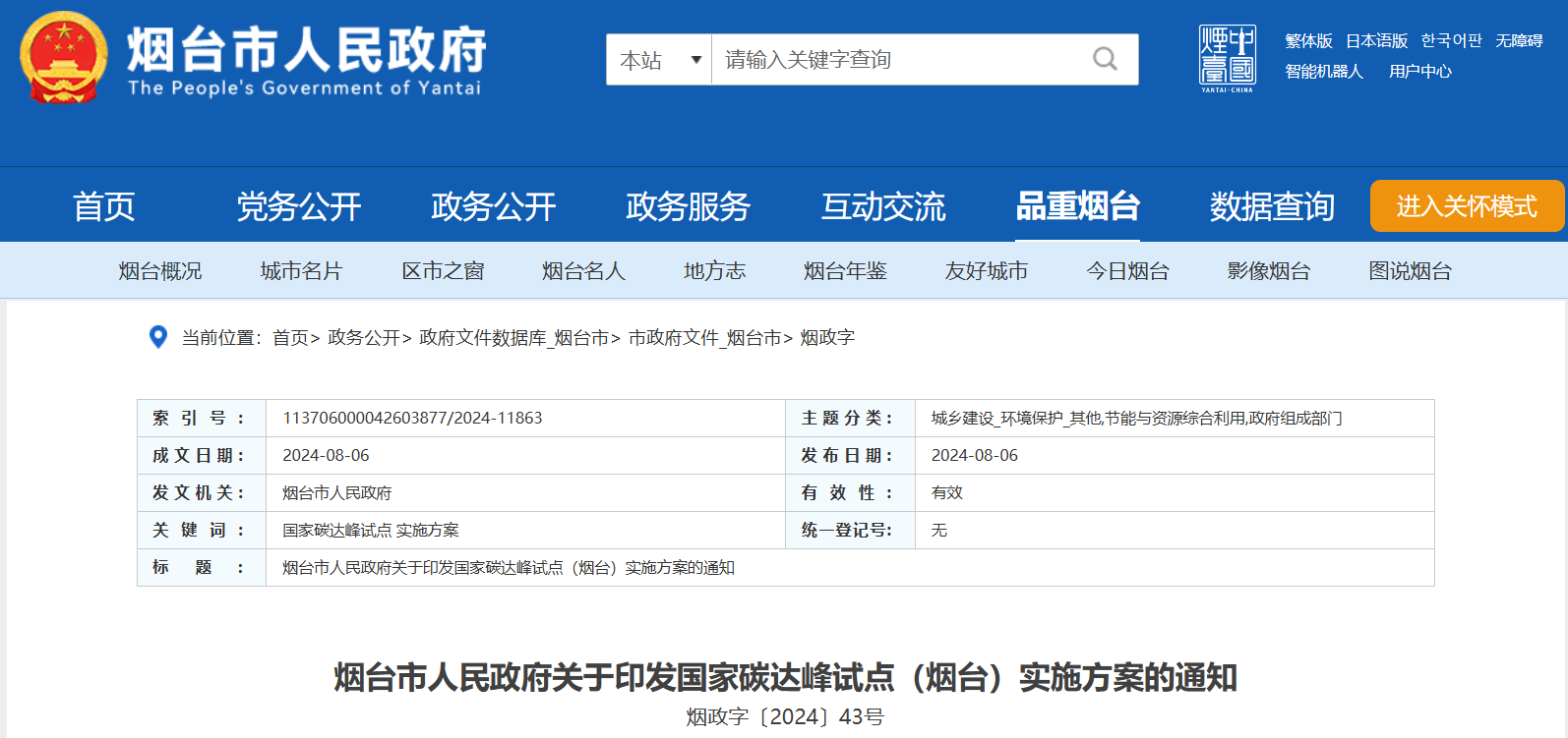近日,山东省烟台市人民政府发布《关于印发国家碳达峰试点(烟台)实施方案的通知》。