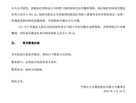 据能源圈了解到,近日,平煤股份发布2023年度权益分派实施公告。