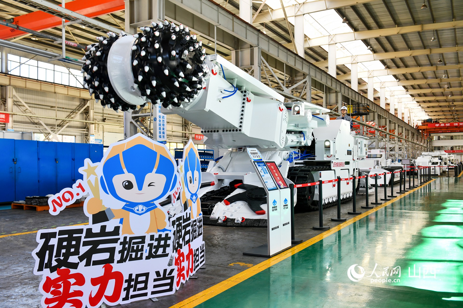 太原研究院彩虹基地生产车间陈列的巷道掘进装备。人民网记者 焦搏文摄