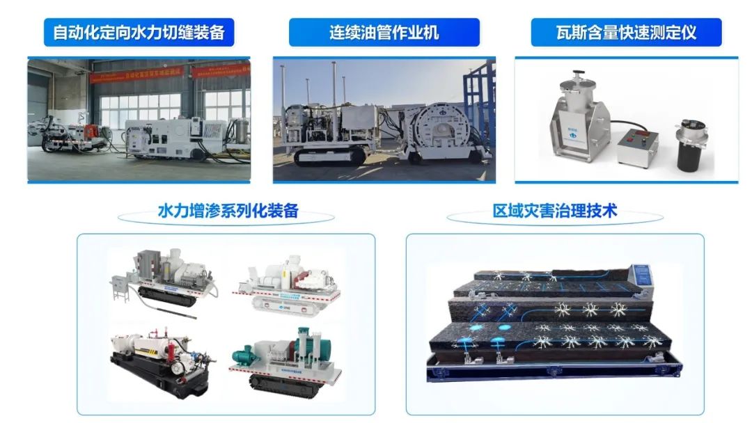 目前,重庆研究院成功研发出地面/井下联合压裂预抽、压-割联合卸压增渗、地面瓦斯含量快速测试、定向钻密闭取芯、随钻瓦斯含量测试、瓦斯灾害超限预警等一系列关键技术装备,并已在韩城、平顶山、焦作等矿区推广应用。
