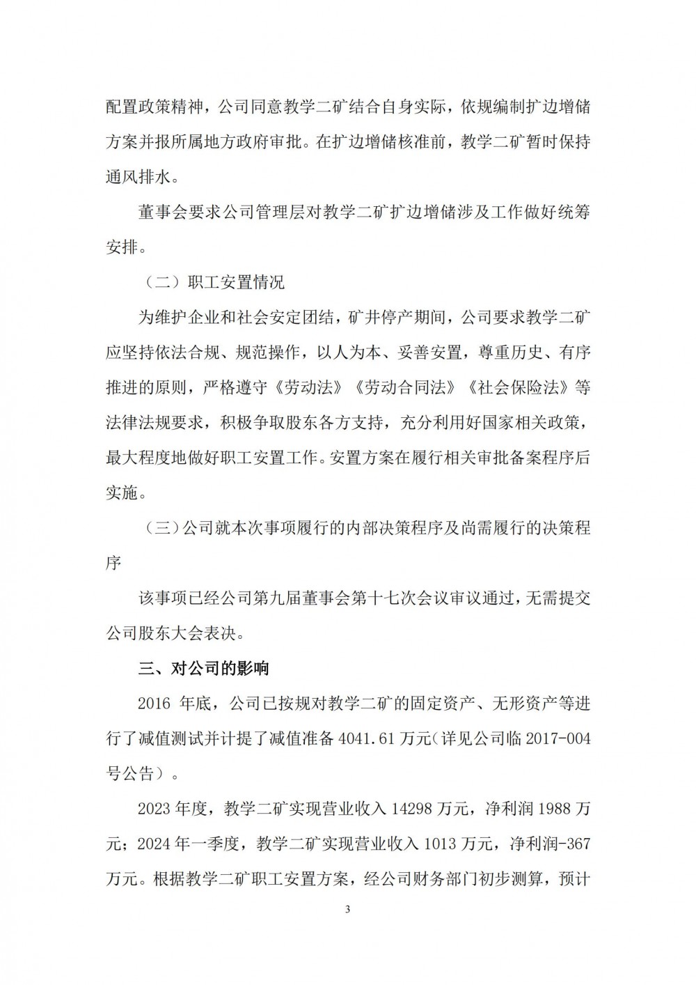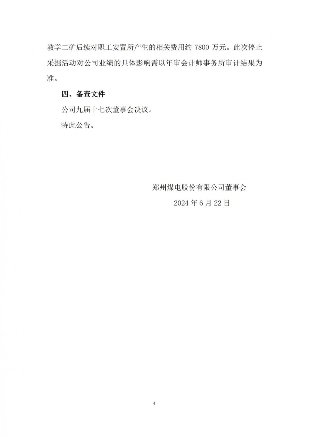 郑州煤电表示,2023年度,教学二矿实现营业收入14298万元,净利润1988万元;2024年一季度,教学二矿实现营业收入1013万元,净利润-367万元。根据教学二矿职工安置方案,经公司财务部门初步测算,预计4教学二矿后续对职工安置所产生的相关费用约7800万元。