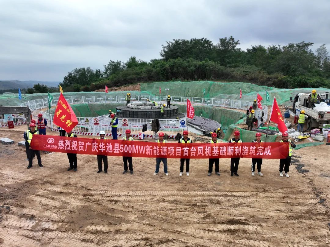 近日,广东能源集团贵州公司西安分公司广庆华池县500mw新能源项目首台风机基础顺利浇筑完成,标志着项目风机主体工程施工正式按下快进键,为下一步风机吊装工作奠定坚实基础。