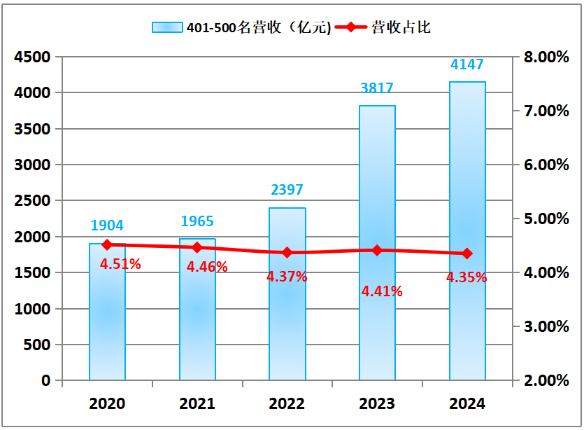 ▲图9 20202024年500强企业中中国企业数(亿元)及占比情况