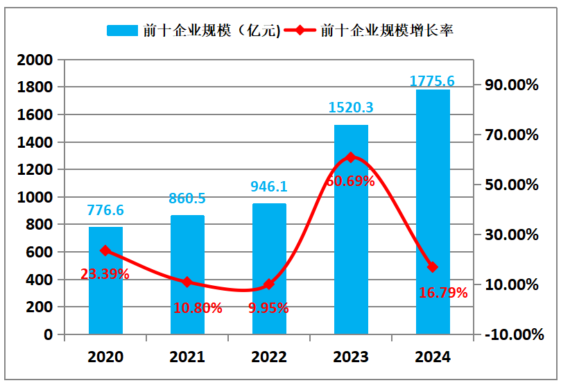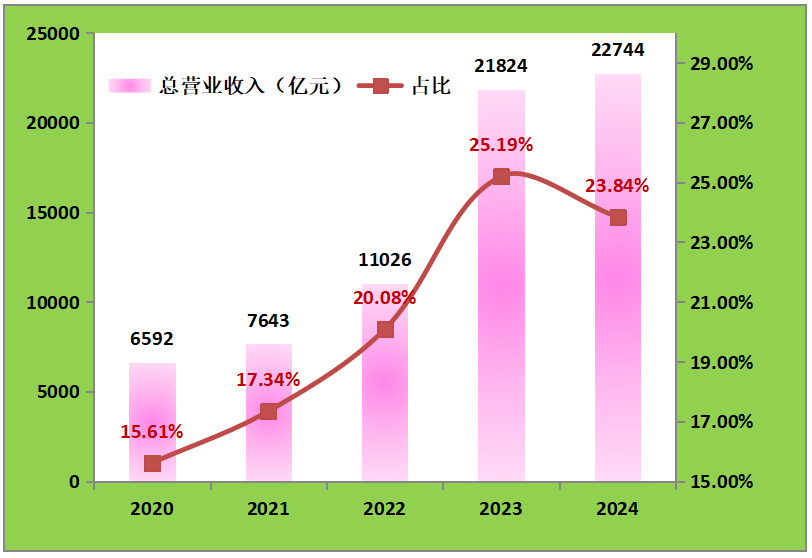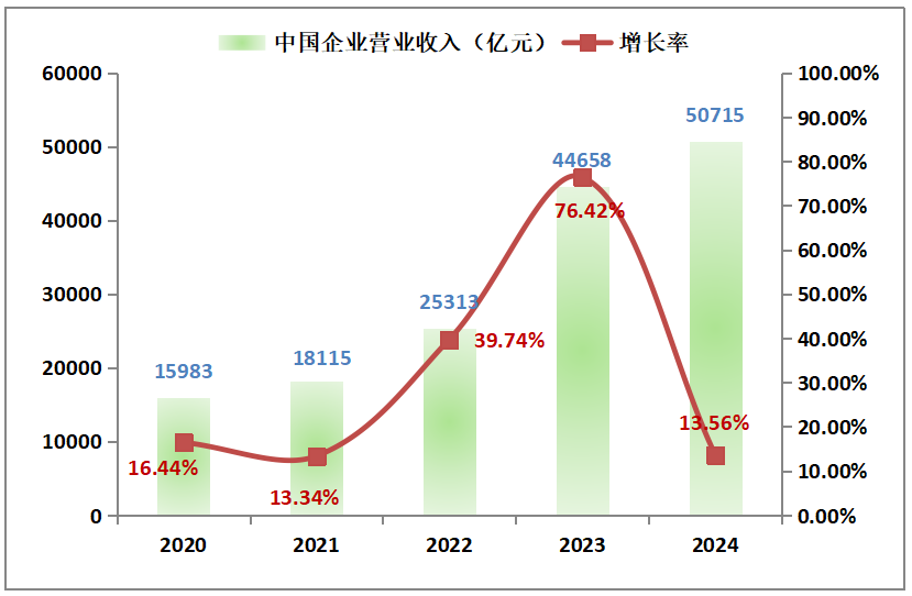 ▲图10 20202024年500强企业中中国企业总营业收入(亿元)及增长率情况