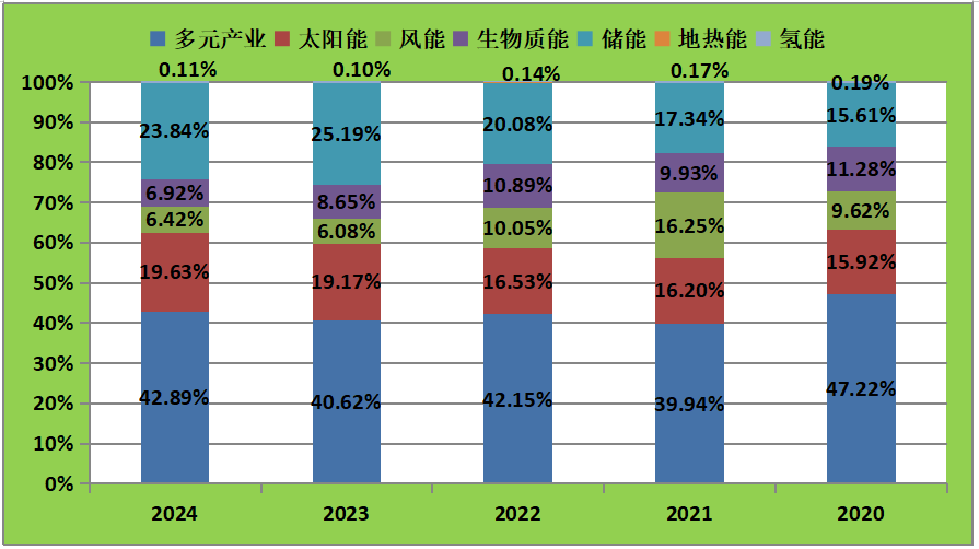 一是企业总营业收入上,2024年500强企业中,储能企业总营业收入达2.27万亿元,比上年的2.18万亿元增加0.09万亿元,是除多元产业企业外,唯一突破2万亿元大关的产业,也是近十年来保持每两年翻一番的产业。其总营业收入占比达23.84%,比上年的25.19%减少1.35个百分点(见图12、13)。