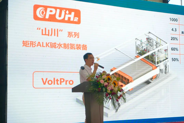 研发总监崔童博士在介绍时表示:“山川这一名称象征着自然的力量与广阔,与绿色新能源的理念相得益彰,同时也暗示了我们的产品能够为大规模制氢项目提供大型制氢设备;山川字形还巧妙地体现了产品的插片式结构。”