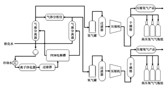 [来源:瞿丽莉《质子交换膜电解水制氢技术在电厂的应用》pem 电解水系统流程图]