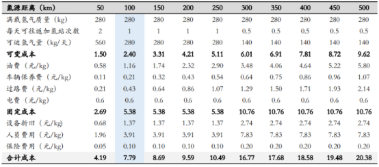 据东吴证券测算,氢源距离为100km时20mpa长管拖车储运成本约7.79元/kg,成本对距离敏感,短途运输经济性较高。