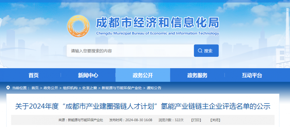 8月30日,成都经信局k8凯发官网发布关于2024年度“成都市产业建圈强链人才计划”氢能产业链链主企业评选名单的公示。