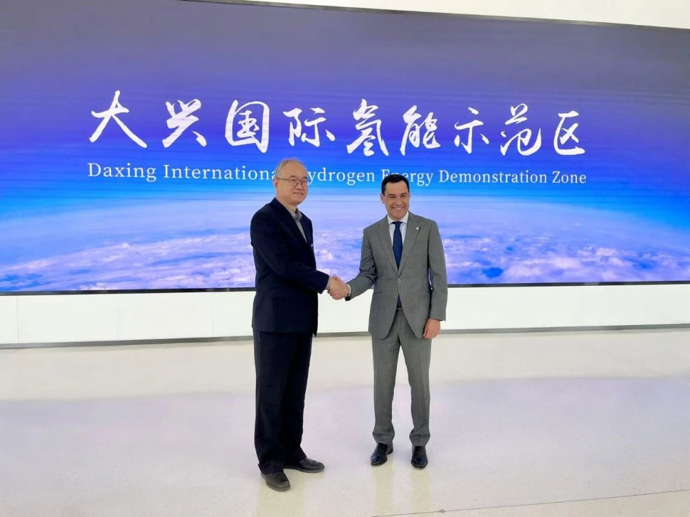 中电丰业董事长王德军陪同参观了大兴国际氢能示范园区氢能展览馆,并在胡安·曼努埃尔·莫雷诺·博尼利亚主席和中联部杨淞主任的见证下,与西班牙国际知名能源coxabengoa集团主席enrique riquelme签订了双方合作开发大型绿氢电解槽市场的协议。
