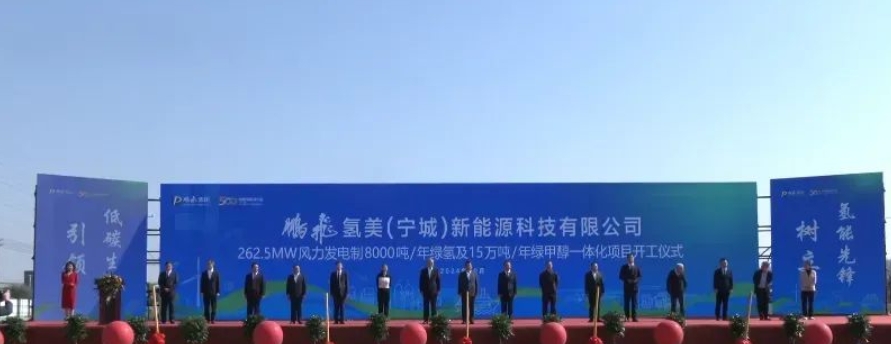 10月12日,鹏飞氢美宁城县风光制氢醇一体化项目奠基仪式在汐子工业园区举行。
