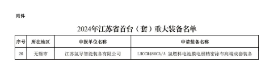 近日,江苏省工业和信息化厅正式公示了“2024年度江苏省首台(套)重大装备名单”,氢导智能凭借其自主研发的“lhccm480ca/a氢燃料电池膜电极精密涂布高端成套装备”成功入选,标志着氢导智能在氢能高端装备制造领域的又一重大突破。