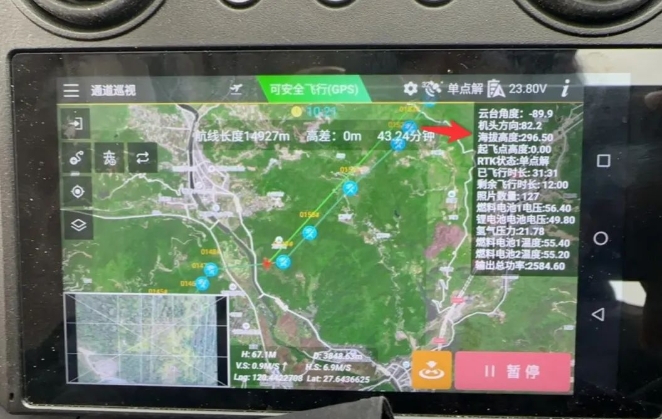 图 | 正在进行巡检作业的氢动力无人机遥控器界面
