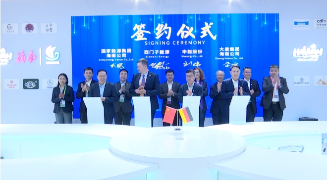 11月5日,德国西门子能源与国家能源集团海南公司、申能股份、大唐集团海南公司在第七届进博会海南馆举行合作协议签约仪式,几位能源大咖计划共同推动海南海上风电制绿氢绿醇,助力海南绿色能源产业发展。