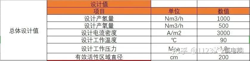 设计值输入表产氢量按照1000nm³/h进行设计,产氧量为产氢量的一半,为500nm³/h,设计电流密度按照目前常用的电流密度3000 a/m2进行设计(可能低了一点),电解槽有效活性区域直径为200cm,温度压力为90℃、1.6mpa。三个主要的总体设计值确定后,我们就可以依据这些参数进行电解槽的总体设计和计算。