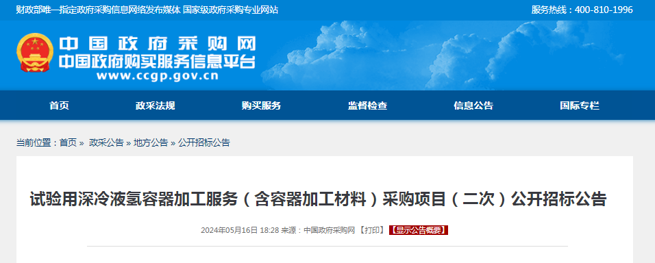 据能源圈了解到,近日,试验用深冷液氢容器加工服务(含容器加工材料)采购项目(二次)公开招标公告公布。