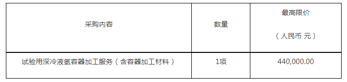 (2)简要技术/服务要求:本项目采购试验用深冷液氢容器加工服务(含容器加工材料),具体详见采购需求。
